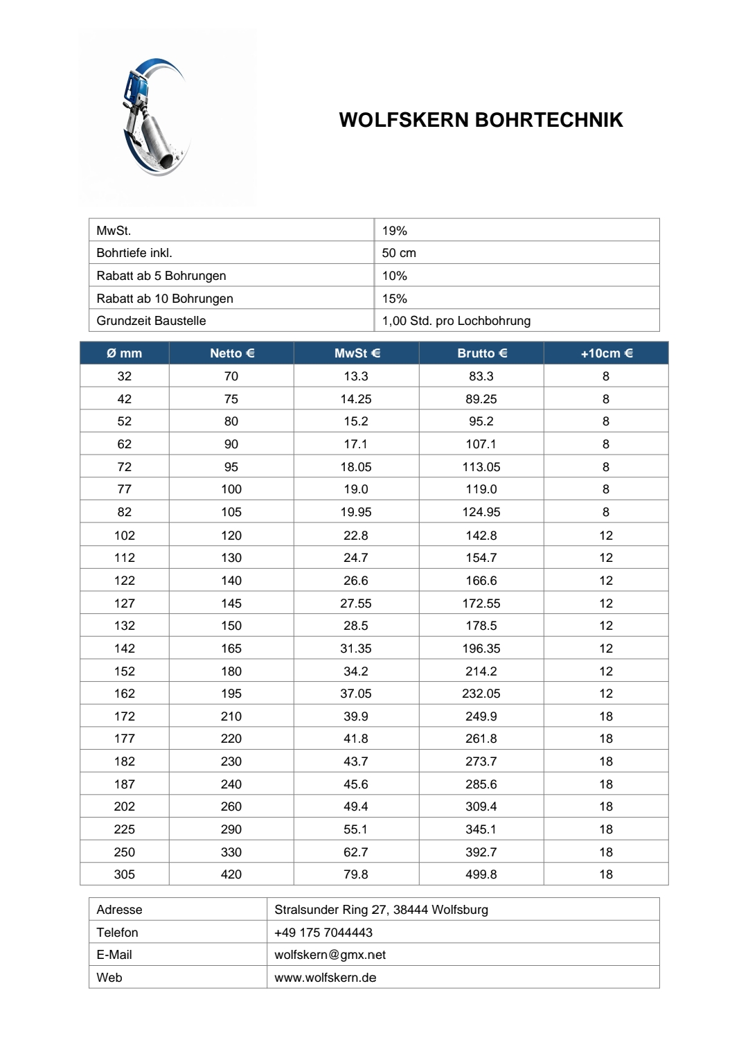 Wir sind spezialisiert auf Kernlochbohrungen, Betonbohren in Wolfsburg und Umgebung.